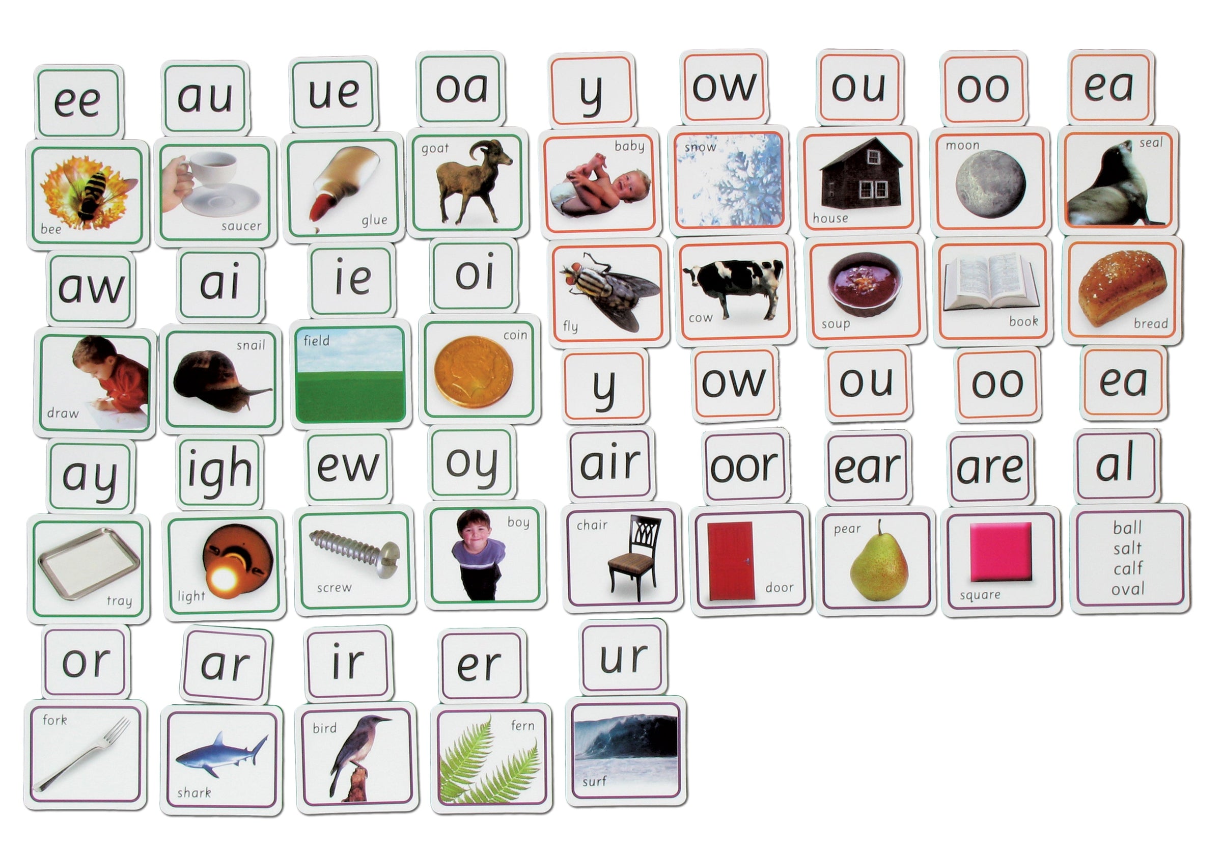 Match pictures and sounds with this magnetic set of pictures and digraphs and letters.