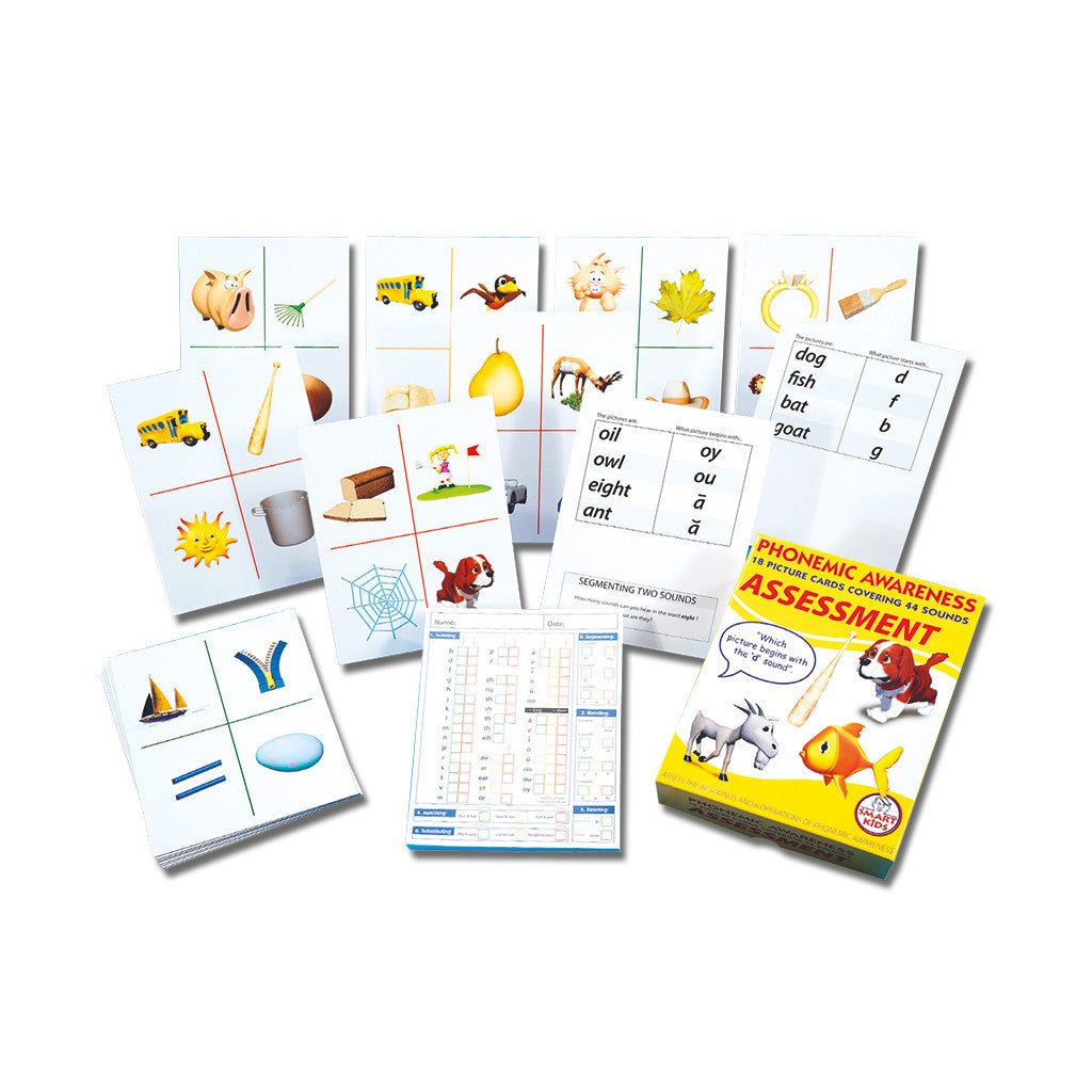 This easy-to-use assessment tells you what sounds children know and what sounds they need to learn. Children are asked to identify the 44 sound images, as well as perform the different operations of blending, segmenting, deleting, and substituting. Contains 18 cards and a 100-sheet scorepad.