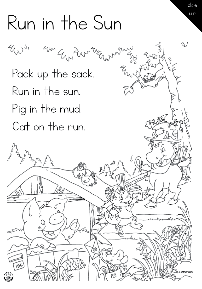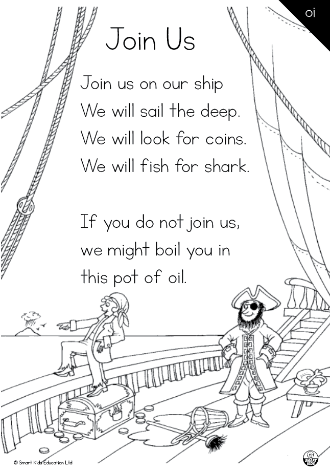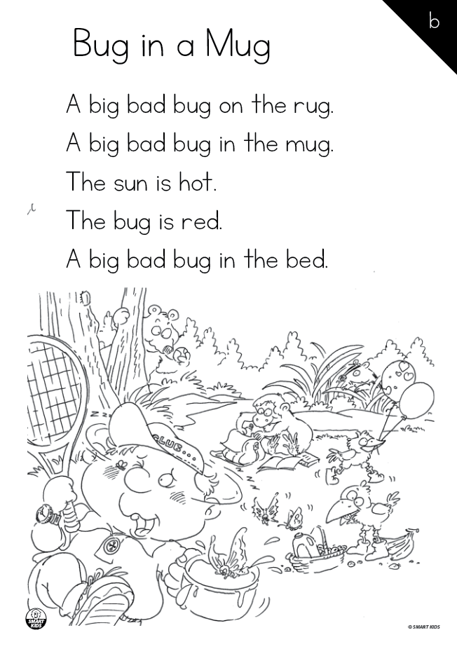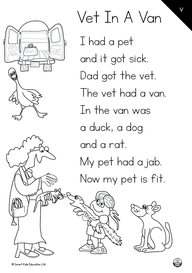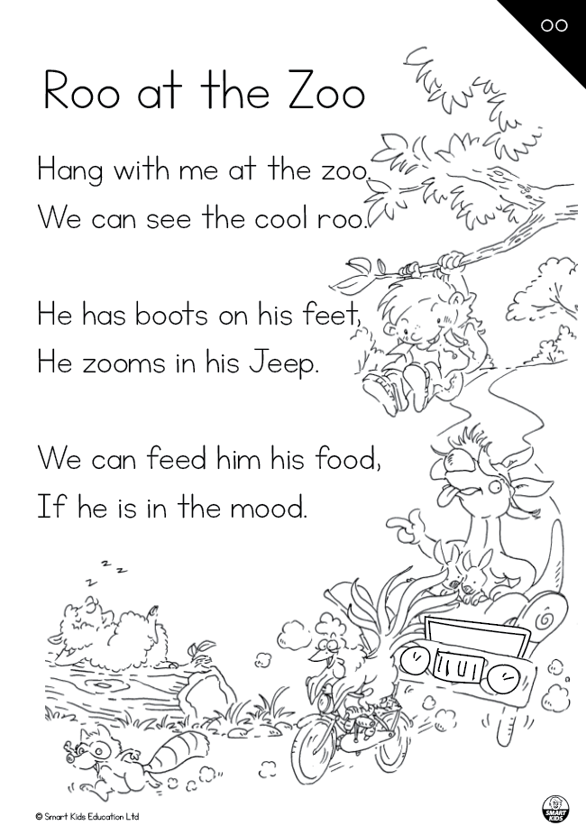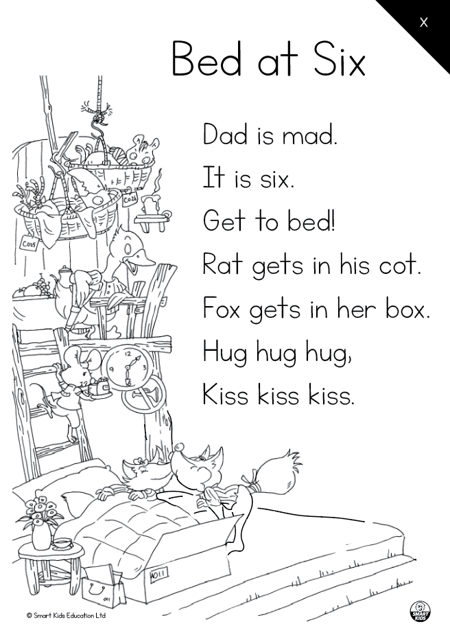 Then there are 33 daily poems covering the following phonemes in this order: h, b, f, ff, l, ll, ss, j, v, w, x, y, z, zz, qu, ch, sh, th, ng, ai, ee, igh, oa, oi, oo, ow, ar, air, ear, er, ur, or, ure.