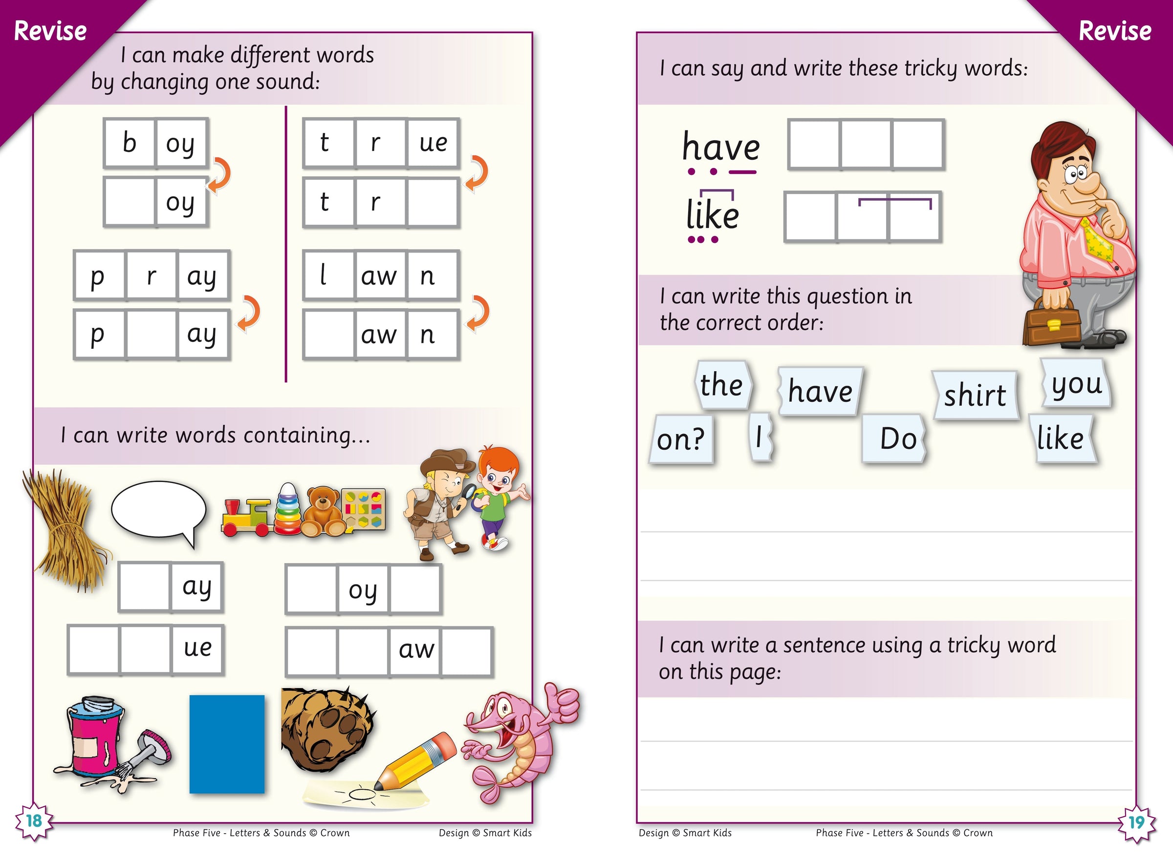 Help pupils both at home and school with our revolutionary A5 Letters and Sounds Phase 5 Activity Book 1. Its clear but exciting pages offer daily activities for reading, spelling and writing new sounds, words and sentences. Get to grips with reading new graphemes including split vowel digraphs. Sort alternative pronunciations by sound and put it all into practice by reading humorous stories. Each page is colour-coded to the relevant Phase, with the focus letter-sound shown in the corner. Perfect for homework activities, there is a handy sound checklist at the beginning of each Phase and simple notes of guidance for parents about Letters and Sounds and how they can help their child with the activities at home through e.g. the correct pronunciations of phonemes.