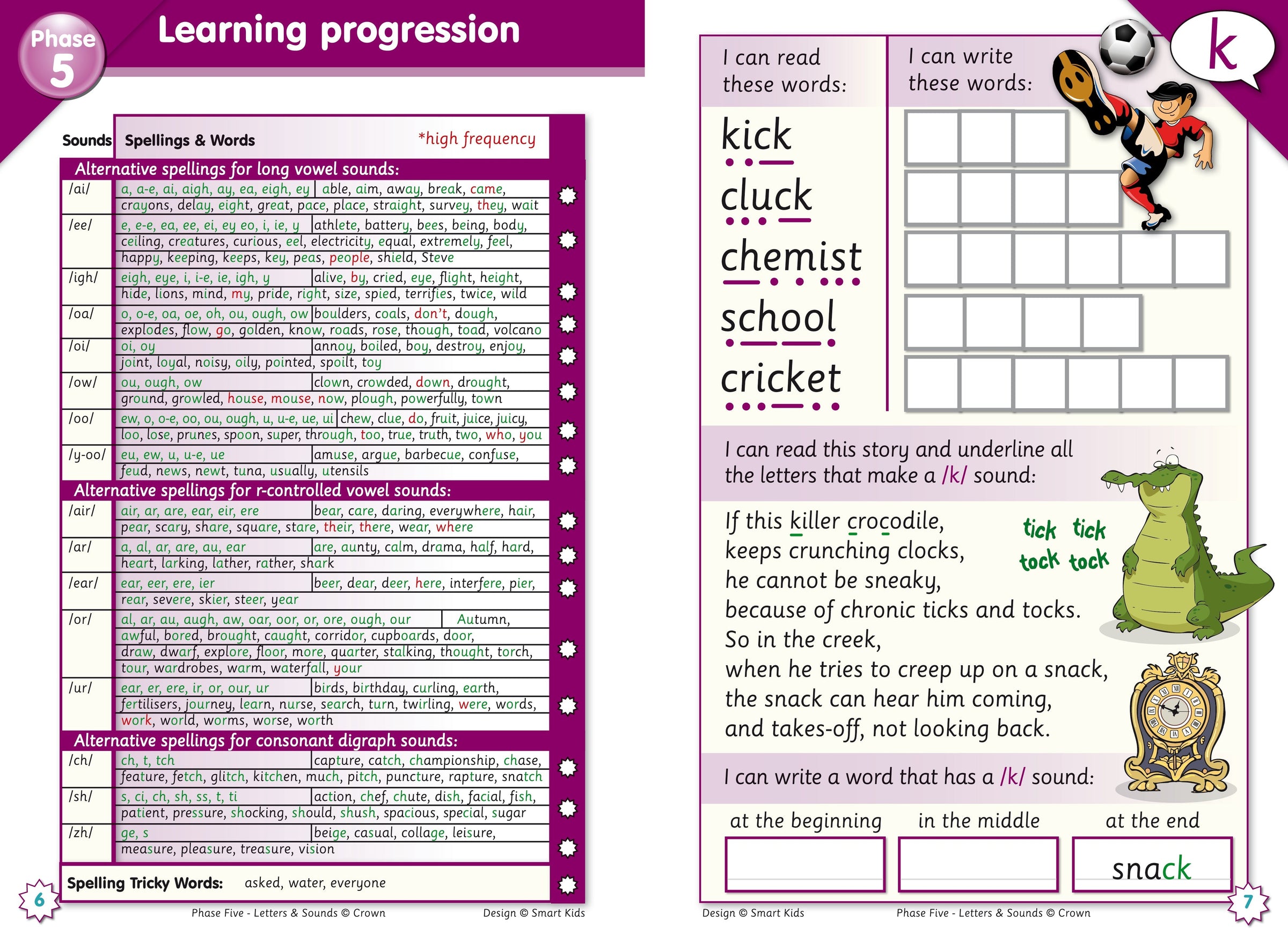 Help pupils both at home and school with our A5 Letters and Sounds Phase 5 Activity Book 2. Its clear but exciting pages offer daily activities for reading, spelling and writing new sounds, words and sentences. Spot and write alternative spellings for spoken sounds, as you read witty stories and undertake tasks that promote reading for meaning as well as phonics! Each page is colour-coded to the relevant Phase, with the focus letter-sound shown in the corner. Perfect for homework activities, there is a handy sound checklist at the beginning and simple notes of guidance for parents about Letters and Sounds and how they can help their child with the activities at home through e.g. the correct pronunciations of phonemes. Also perfect for T.A. sound group support.