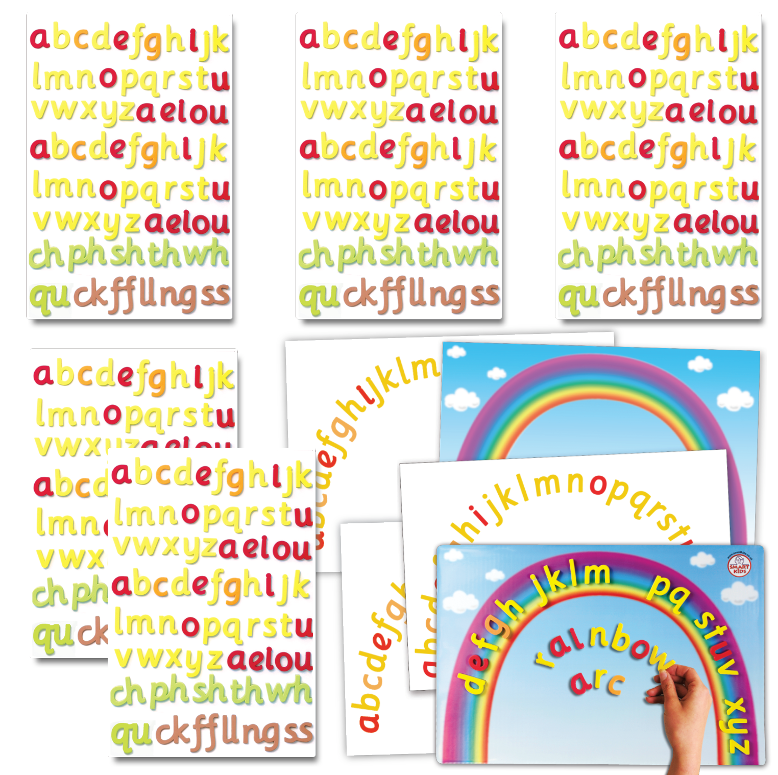 Contains a pack of 5 Alphabet Arc Mats and 5 sets of Magnetic Letters.
