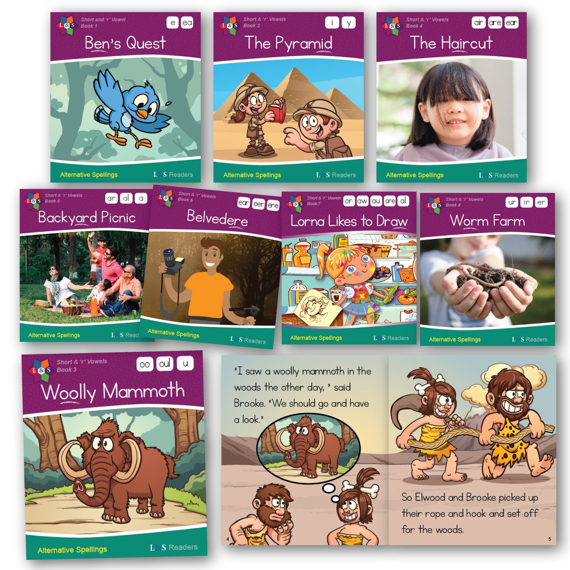 Set of 8 readers introducing the different spellings of the short and 'r' controlled sounds.