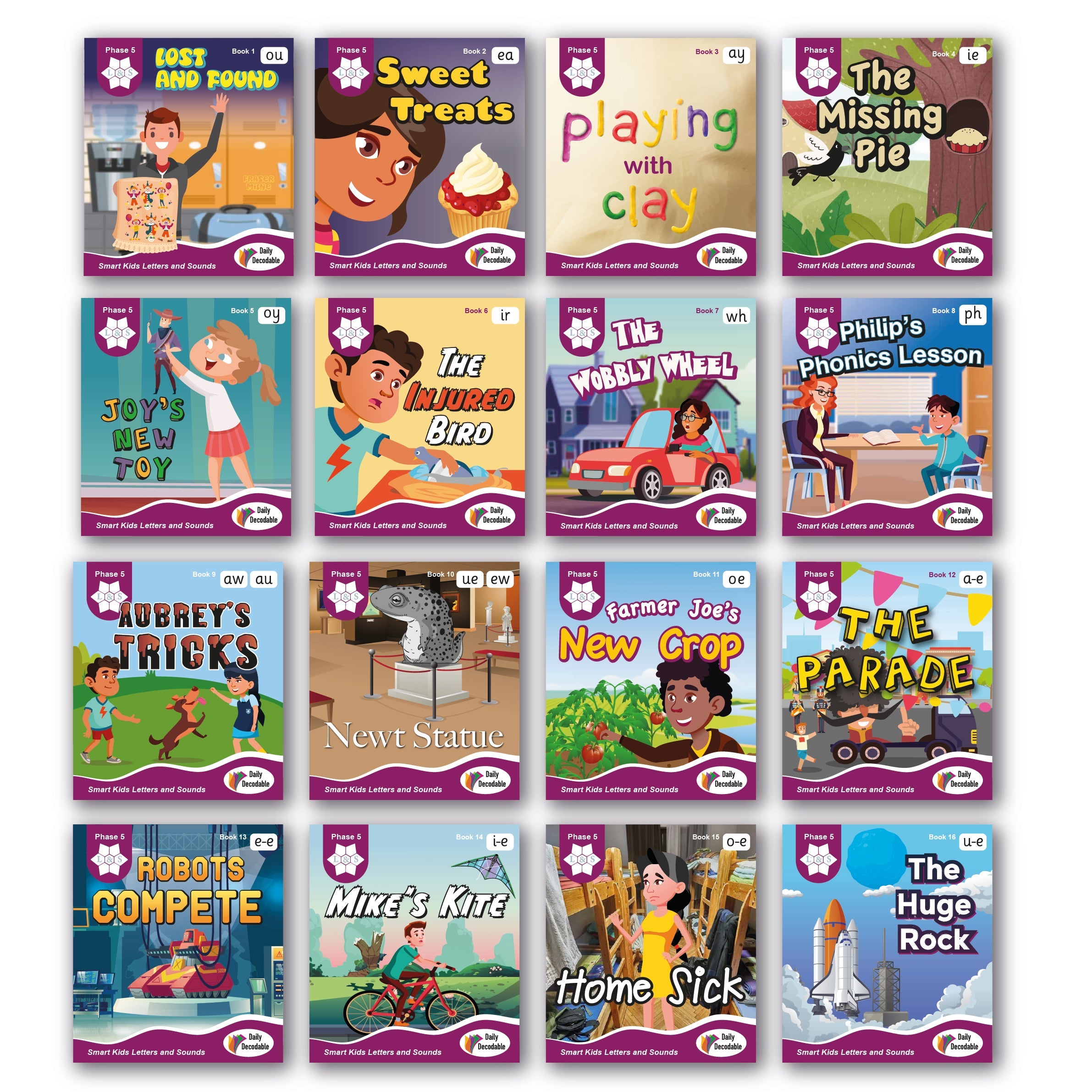 Set of 16 readers introducing the new spellings taught at the start of Phase 5.