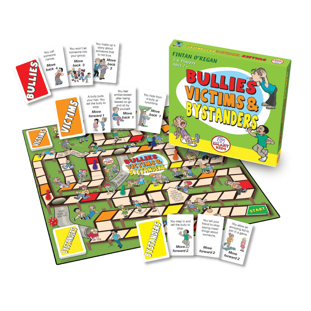 This excellent game is designed to raise a child's awareness of bullying and how it feels to be bullied. Devised by Fintan O'Regan (an experienced headteacher and behaviour specialist) it also encourages proactive actions on the part of the bystander who observes the bullying. Every incident card has been weighted based on the severity of the bullying so that children can see how harmful this behaviour is. Children are encouraged to model good behaviour on how to overcome bullying. Ideal for teaching an awareness of bullying and the appropriate behaviour of a bystander within the curriculum. Alternatively, it can be used for mediation or resolution purposes. Here, after a bullying incident, the teacher can invite those involved to play the game together in an effort to understand what it is like to be bullied and how to prevent future incidences of bullying. Contains 1 Game Board (510 X 510mm), 54 playing cards, 6 pawns and a die.