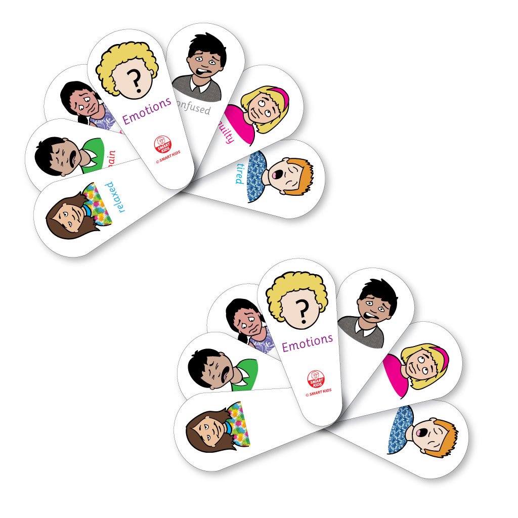 These fans depict a variety of emotions. Two different versions included, one with expressions and the names of the emotion and the other just with expressions. Print, laminate, cut out and connect using a key ring or rivet.