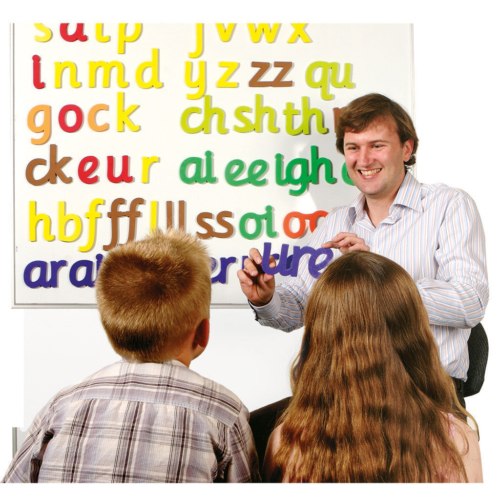 These giant magnetic letters are a must for teaching the Letters and Sounds programme, supporting whole-class phonics instruction. The letter patterns represented follow the progression of Letters and Sounds and are colour coded to make learning easier and fun. As you introduce each sound week by week, you can keep it on the top of the whiteboard so that words can be created from letters that have previously been taught. Children can see the process of blending by pushing the letters together and segmenting by pulling the letters apart.