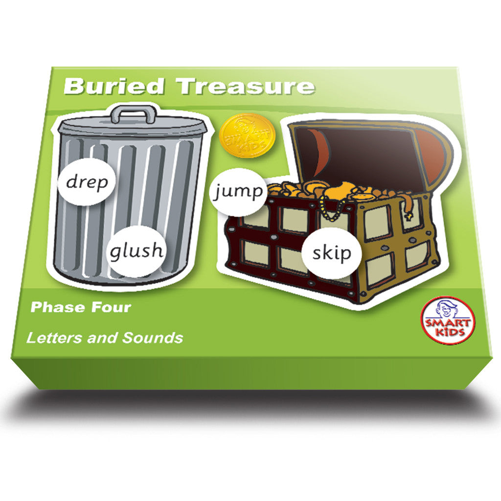 Decoding has never been so much fun! Work out whether the words on gold coins are real or nonsense. Bury the coins in a sand tray and get the children to dig for them, sorting them into real words that can be placed on the treasure chest and nonsense words that are placed on the dustbin. Each game contains 20 coins plus 7 blanks, 1 treasure chest card and 1 dustbin card all supplied in a sturdy box.