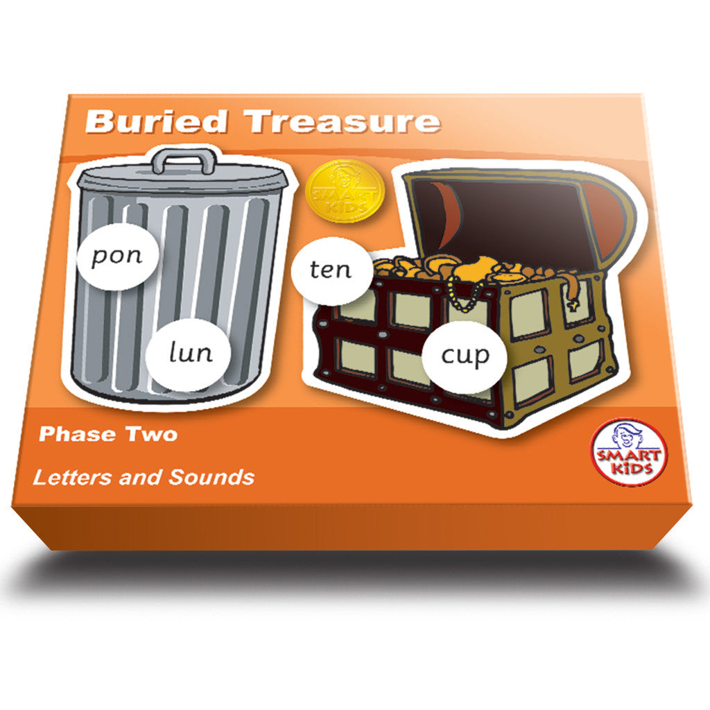 Decoding has never been so much fun! Work out whether the words on gold coins are real or nonsense. Bury the coins in a sand tray and get the children to dig for them, sorting them into real words that can be placed on the treasure chest and nonsense words that are placed on the dustbin. Each game contains 20 coins plus 7 blanks, 1 treasure chest card and 1 dustbin card all supplied in a sturdy box.