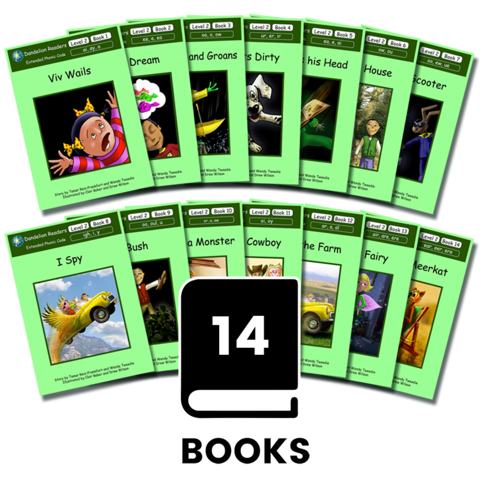 The Dandelion Extended Code Series - Level 2 extends learning from the previous set of books, introduces 2 or 3 alternative spellings for the vowel sounds.