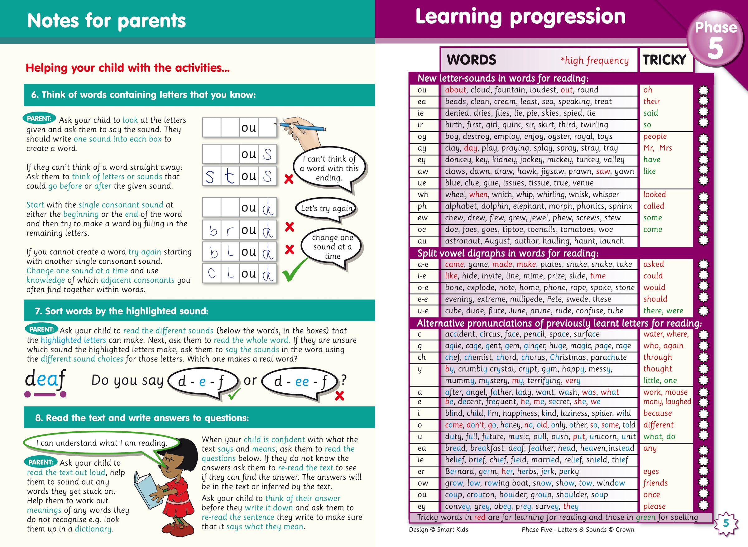 Help pupils both at home and school with our revolutionary A5 Letters and Sounds Phase 5 Activity Book 1. Its clear but exciting pages offer daily activities for reading, spelling and writing new sounds, words and sentences. Get to grips with reading new graphemes including split vowel digraphs. Sort alternative pronunciations by sound and put it all into practice by reading humorous stories. Each page is colour-coded to the relevant Phase, with the focus letter-sound shown in the corner. Perfect for homework activities, there is a handy sound checklist at the beginning of each Phase and simple notes of guidance for parents about Letters and Sounds and how they can help their child with the activities at home through e.g. the correct pronunciations of phonemes.