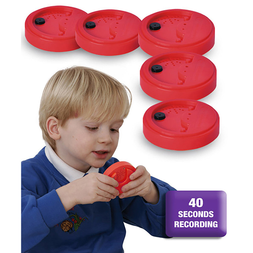 Talking Tins now available as a pack of 6! Talking Tins are proving to help children of all ages to develop their speaking and listening skills. Talking Tins allow you to record and playback your own voice messages, music or sound effects. With a recording time of 40 seconds these are highly appealing to learners who respond well to auditory and tactile learning styles. Measures 79mm diameter x 22mm.