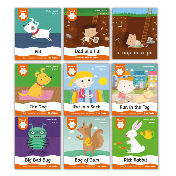 Set of 8 decodable readers levelled Smart Kids Letters and Sounds - Phase 2 phonics progression. Fun, simple stories and incredible value.