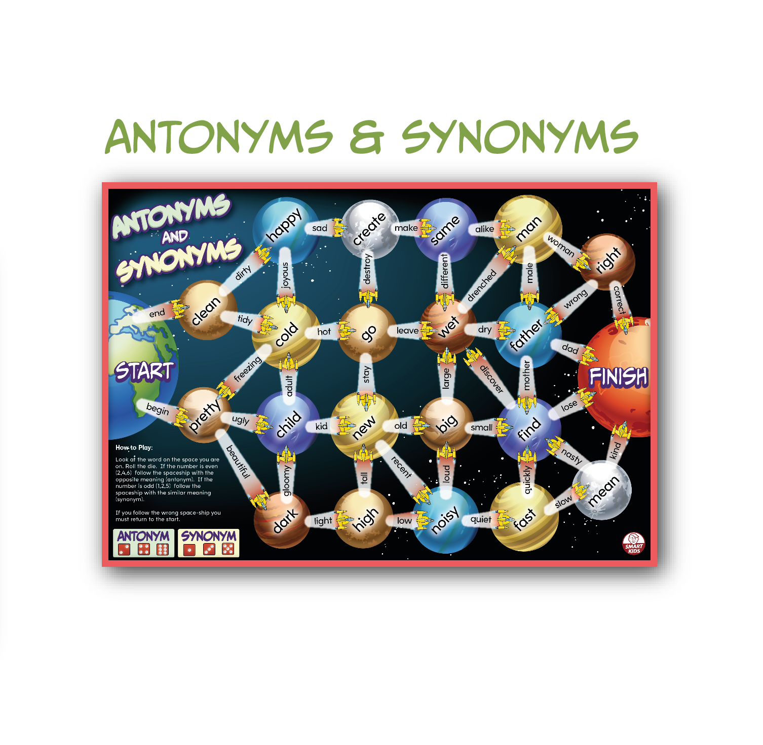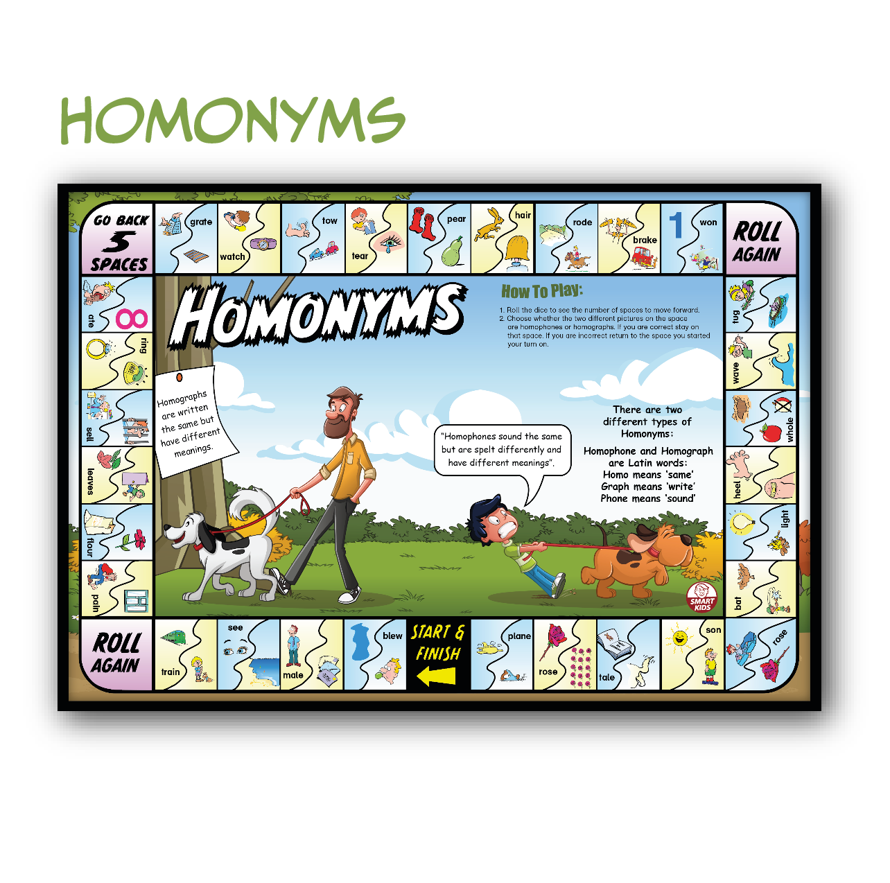 Two board games cover spelling and language relationships: (homonyms, synonyms and antonyms).
