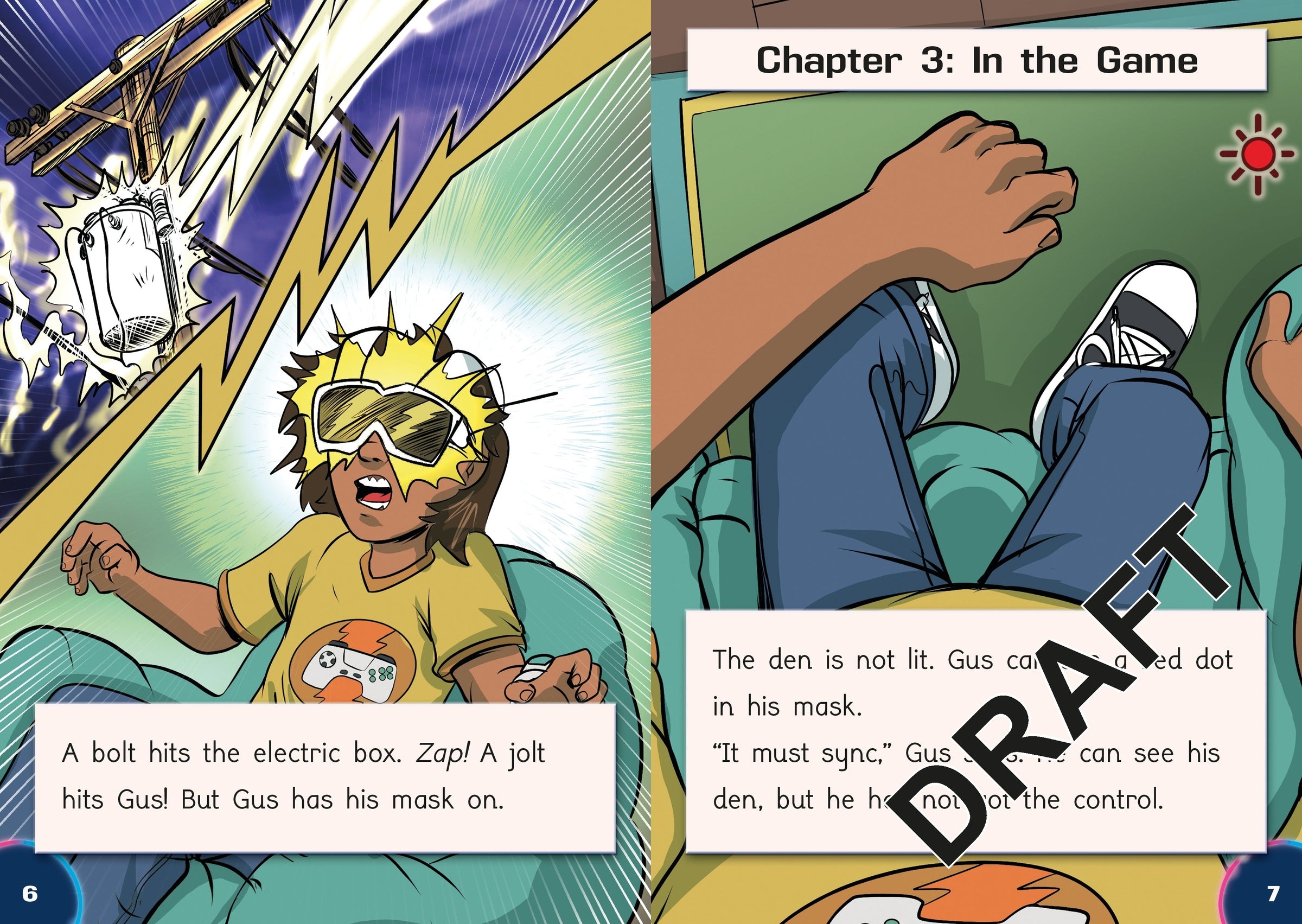 After being pulled into his game, Gus learns that there is no way out unless he continues to play. To escape, Gus has to befriend the other players, form a team and work together. This action-packed quest story takes the reader from CVC and CVCC word text through to alternative consonants, consonant digraphs, and suffixes -ed and -ing.