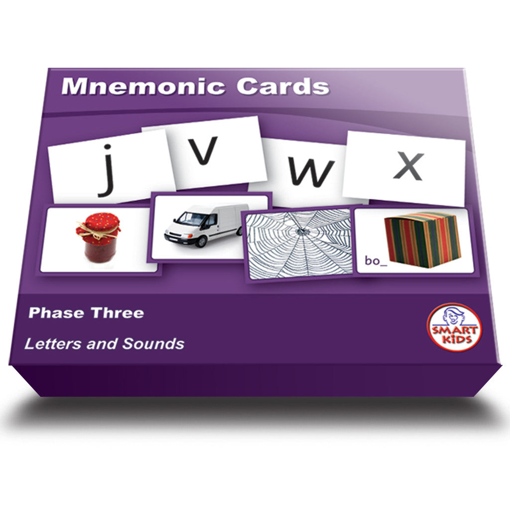 This beautiful range of photographic, double-sided cards provides mnemonics for all the key letter-sounds of English (e.g. the letter s on one side and a photograph of a snake on the reverse). Hold each card up and ask the children to say the letter-sound. If the children don't respond, turn the card over to show the mnemonic. Each card measures 170 x 247mm. Each card has a letter or grapheme on one side, with its mnemonic on the other. This set deals with graphemes learnt at Phase 3 of Letters and Sounds. Contains 28 double-sided laminated cards.