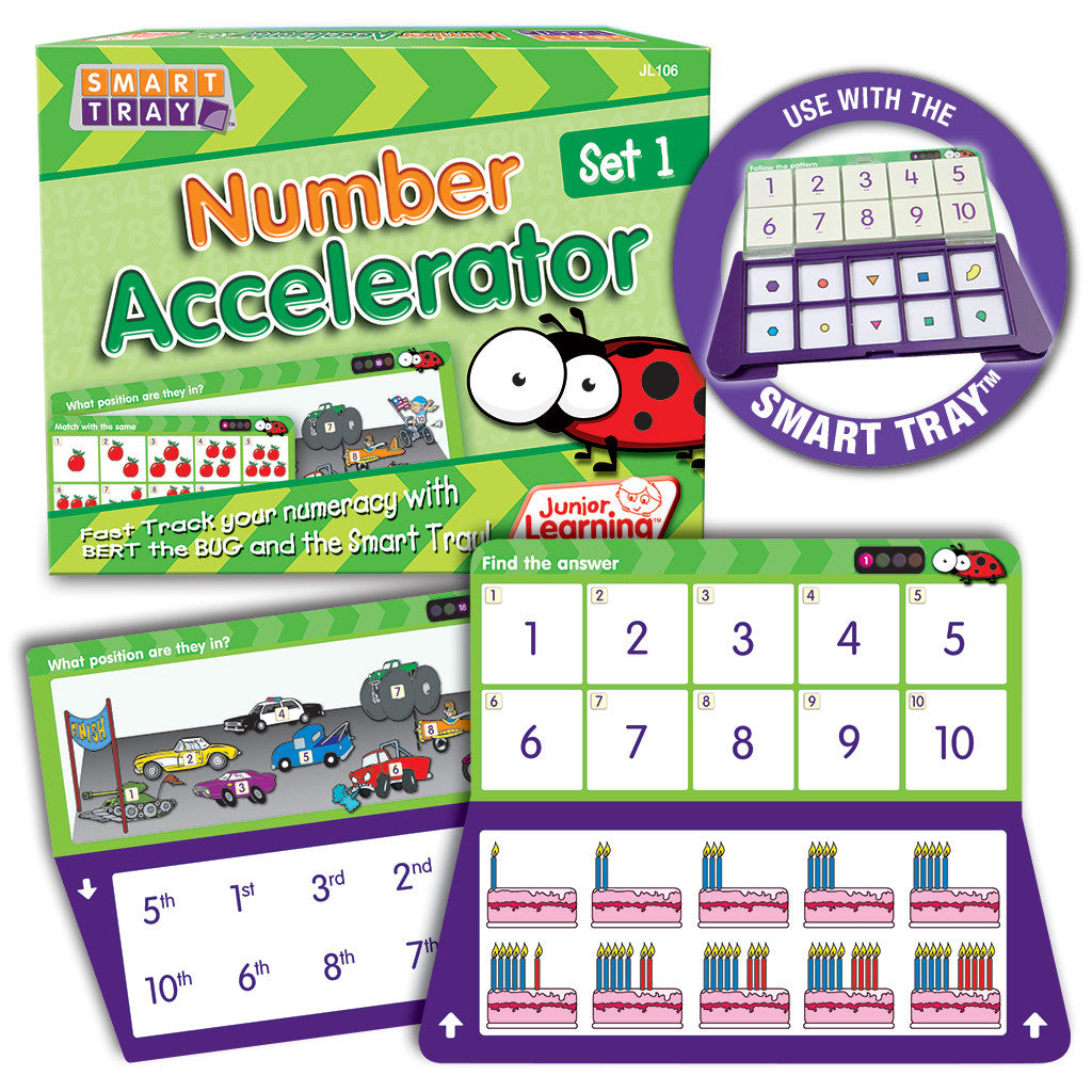 Complete 25 counting, matching, more than/less than, predicting, ordering, positioning and pattern recognition activities to develop key number skills with Set 1. Smart Tray sold separately.